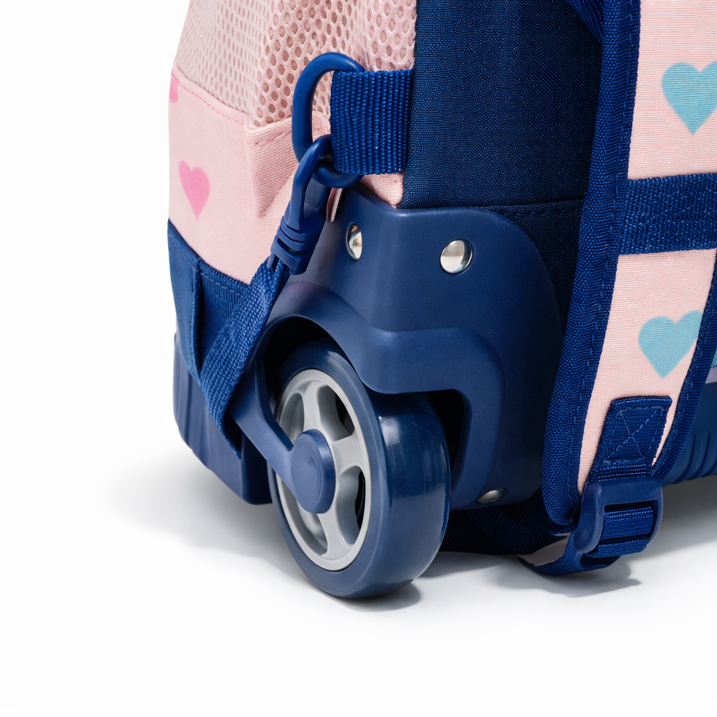 Le cartable trolley 45 cm est un trio complet comprenant un cartable à roulettes, un sac goûter isotherme et une trousse assortie, idéal pour les élèves du primaire. Le cartable (45 x 32 x 22 cm) dispose de deux compartiments zippés, d’une poignée trolley et de bretelles réglables avec dos matelassé pour plus de confort. Le sac goûter (24 x 20 x 11 cm) et la trousse (22 x 9,5 x 6 cm) complètent cet ensemble pratique, solide et adapté à un usage quotidien.